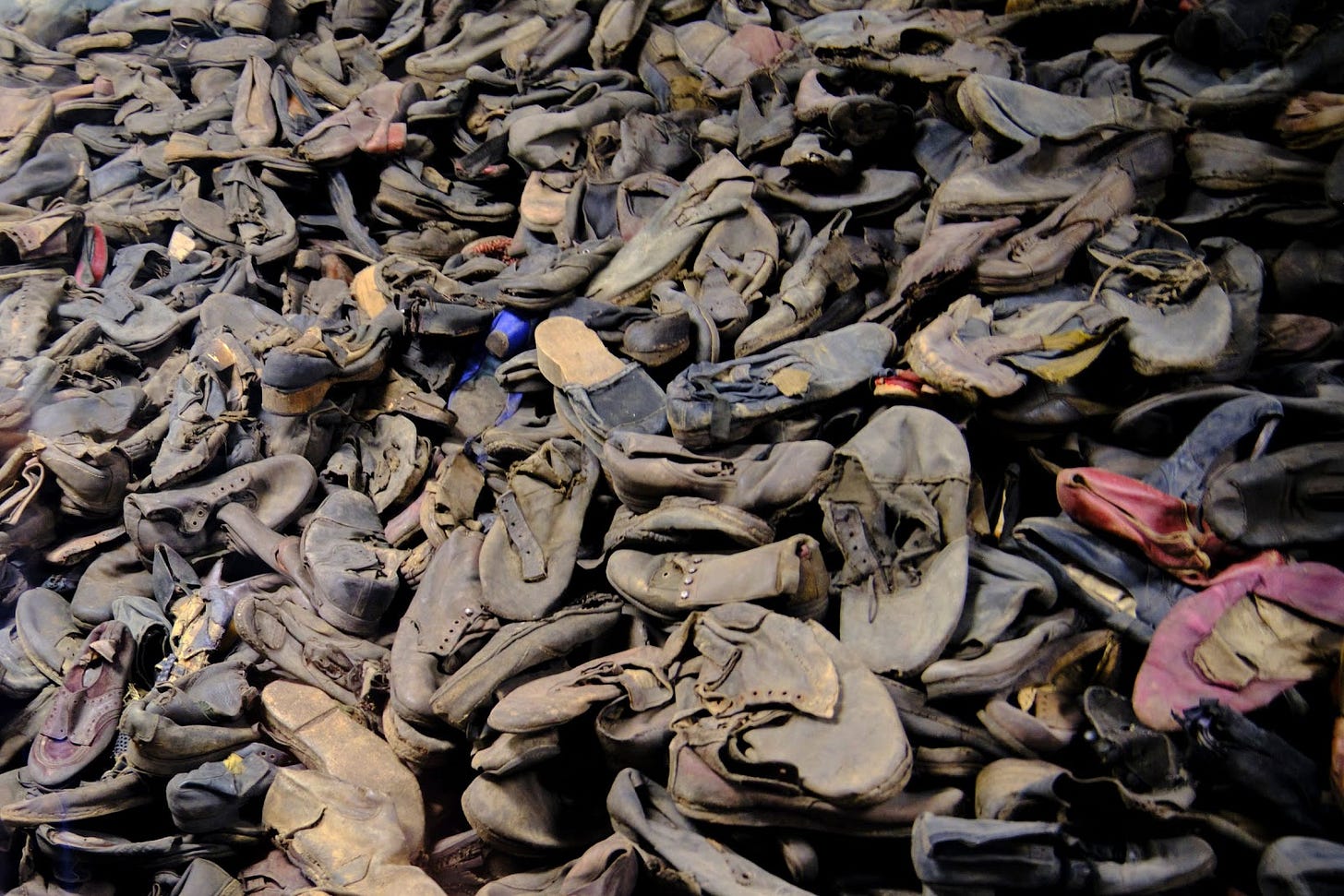 The tragic remains were presented without drama or fanfare. A mountain of hair, cut from the murdered victims and saved to make rope and mattress stuffing, rested eerily behind a 30-foot glass wall, filling half the room — mostly dark brown and black tresses, some blonde, many gray. In another room, a tumbled pile of suitcases reached far above our heads, many with the owners’ names still chalked on the sides — because when they were led to the “showers”-cum-gas-chambers, they’d been told they would need to find their belongings later. Another room contained a vast pit filled with the pots and pans and kettles and cups that the deportees had carried on their long journey, hoping they would settle somewhere else. Half of another room contained thousands of shoes collected from the victims: muddy and worn from their owners’ ordeal. The ones with holes had shod the poor; a smart red pump had adorned the rich — and I couldn’t help but think of Ecclesiastes 9:2.