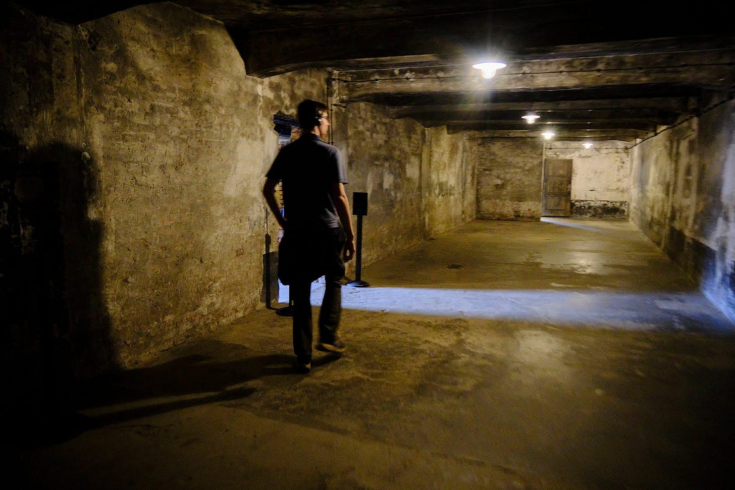 Pointing to this remaining gas chamber, Barbara said that because they were using it as a bomb shelter when the Russians arrived, the Nazis failed to destroy it — leaving us with the evidence. She opened the door to the gas chamber, which was built under a hill such that the door seemed to lead into an ancient barrow. I felt a wave of panic as she disappeared inside that dark grave where so many thousands had been murdered. We followed her into the gloom, and as our eyes adjusted to the dim electric bulbs, my first thought was: It’s huge.